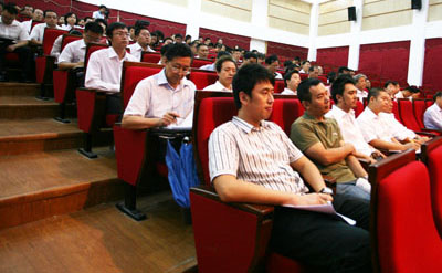 大会现场(二) 10月22日下午,学院全体干部会议在书德楼报告厅召开,党委书记、执行院长陆丹发表了重要讲话。