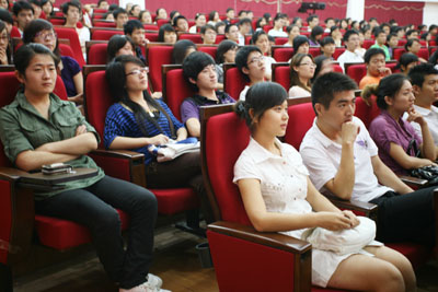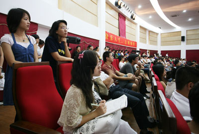 后排站满了没有座位坐的同学,两个小时的宣讲,他们始终专心致志
