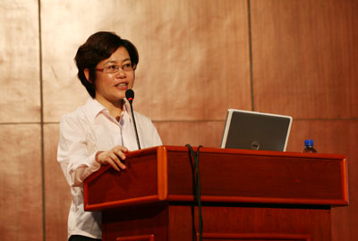 吉利集团人力资源副总裁魏梅向同学们介绍吉利