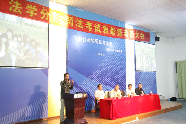 战胜“中国第一考”!我们的明天更灿烂! 日前,司法考试结果公布,我院法学分院学生以52%的通过率取得本次司考佳绩。报名参加此次司法考试的学生共有71人,其中有11人通过司考a线(a线标准分360分),26人通过c线(c线标准分315)。12月13日晚,法学分院隆重举行司法考试表彰暨动员大会,对09年通过a线的11名同学进行表彰奖励,以榜样带头作用激励低年级同学。 国家司法考试是国家统一组织的从事特定法律职业的资格考试,初任法官、初任检察官和取得律师资格必须通过国家司法考试。国家司法考试每年举行一次。国家司法考试主要测试应试人员所应具备的法律专业知识和从事法律职业的能力。自2008年以来首次允许在校大学生可以参加国家司法考试。考试因其考察范围广,内容多,题量大,难度高,通过率低,含金量高,每年的通过率保持在10%左右,故又被称为“中国第一考”,是国内最难的考试之一。 法学分院陶虹副院长介绍,本次司考不仅制定了相当科学合理的备考计划,还加强了对参考学生的心理辅导,同时组织老师定期为学生搜集司考的最新资料,通报司考的最新动态,为了备考,很多学生和老师的暑假都在学院度过。师生高度投入的状态备战是本次司考取得成功的关键。通过国家a线的11名学生将在明年6月份到指定的律师事务所实习,通过一年的实习,他们拿到当地司法部门颁发的律师执业资格证书后可以在全国任何一家律师事务所执业。 通过司法考试的陈丽娟、马永正同学谈到备考感受时笑着说,司法考试虽然很难,但是只要用心用功也并非不可战胜。备战司考的过程中要始终保持一种挑战、征服的心态,把内心中的激情持续燃烧,拿出这股拼劲将最终成功。他们说,要感谢老师们对自己的应试心态和学习状态的充分了解、掌握和恰如其分的引导,让大家始终保持着满满的斗志。而在平时的课程学习中,通过参与分院组织的模拟诉讼、送法下乡、普法宣传、观看庭审等多种形式的社会实践活动,获得了很多真实直观的感受,也学会了关注、思考社会法治的学习习惯。在法院、检察院和律师事务所实习期间,大家都积极地运用法学知识和思维观察、思考并动手实际处理一些法律实务。参与这些实践不但有助于司考,更因为每个人都时刻谨记着自己身上所肩负的一份责任,“学以济世”是作为一个法学人应该葆有的情操。 (文字:钟江涛 摄影:李彬)