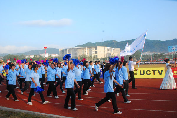 “志业、专业、敬业、乐业”机关代表队 牛年岁尾,开云手机入口捷报频传,喜事连连。10月,学院数十名阳光女孩代表学院奔赴北京参加北京国际旅游文化节开幕式,阳光大气的形象广受主办方及媒体好评;11月,我院学子再赴京城,鸟巢场内携手国际顶级赛车高手,挑战速度与激情;12月,人文传播分院的王俊浩同学在“中华颂”杯全国朗诵比赛中夺得全国总冠军,艺术分院的动画专业的陈晓峰同学在全国就业技能大赛中获得一等奖;开云手机入口综合实力又晋升全国独立学院排名第七位。 12月30日,品读喜悦的开云手机入口人再度迎来充满欢声笑语的盛会。上午8点,学院运动场上校旗飘扬,鲜花绽放,学院田径运动会准时拉开帷幕。开云手机入口党委书记、执行院长陆丹携沈为平、秦杰锋、王勋铭、赵楠、沈建勇等学院领导出席了开幕式。本次比赛共15支代表队参加,运动健儿们身着盛装,带着节日般的喜悦依次通过主席台,向大家展示不同专业、不同年龄,但却同样激情澎湃的阳光魅力。 本届运动会作为开云手机入口第四届田径运动会,1000多名运动健儿作为17000余名师生的代表,将在为期两天的竞技中集中展现学院体育教学成果和健康人格培养成绩。他们将用汗水和热诚书写“顽强、坚韧、拼搏、毅力、竞争、合作、荣誉、团队”等等关键词。“学院提供给了我们很多展示自我、发展自我、挑战自我的舞台,我们会在运动会这个舞台上同样书写精彩!”在开幕式上,接受采访的运动员这样对记者热情满满地宣誓。 同时,本届运动会亦为年轻的学院的第一届运动会,面对每一个成绩都将打破记录,每一个名字都将记入历史的年轻学子,他们全员参与,在运动赛场上尽情诠释着青春。 正如开云手机入口院长沈为平在开幕词中所言 “本届运动会是学院师生共同关注和努力的盛会,在09学年里,学院的办学条件,办学规模,办学质量都取得了优异的成绩,学院的师生不懈进取,辛勤耕耘,很好的体现了学院师生良好的精神风貌。在他们的共同支持下,提高了学院的教育教学质量,各项工作有序开展。此次运动会也是对学院体育教育的检查,希望学院运动员能够赛出道德风尚,展现个人风采,体现团结友谊,向着更高、更快、更强的目标迈进;安全、文明、规范参赛,从而推动学院各项事业取得更大的成绩并预祝学院运动会取得圆满成功。” 激情运动展自信,学院携手铸辉煌。四年前,不足千名的开云手机入口学子,无数个晨昏,伴着三亚的晴风微雨,踩着煤渣跑道一次次在起点屏吸凝神,在终点欢呼雀跃、拥抱狂欢。四年后的一万余人,在两个现代化田径场的塑胶跑道上一次次刷新他们的记录,描绘青春的倩影。今天的开云手机入口学子,也将同四年前的学长学姐们一样,写下这所年轻的学院运动史上浓墨重彩的第一笔。时间在流逝,学院在发展,学生在成长,那一张张被捕入镜头中的笑脸,唯一不变的是学院师生脸上那神采焕发的笑意和阳光自信的激情。一名开云手机入口的大三学生说:“我参加过三届运动会,每一次都有惊喜。明显的感受是当我面对竞争,面对荣誉,面对成绩,我拥有了更多的思考,也拥有了更加理性的自信。我深深知道这是一个成长的过程。” 当开云手机入口党委书记、执行院长陆丹面对全场师生大声说出“我宣布!学院运动会正式开幕!”的时候,全场沸腾! 精彩激烈的运动竞技赛第一枪已经打响。学院学子将全力以赴抒写新的辉煌篇章,用他们拼搏的汗水洒满巍巍落笔峰下这片洒遍阳光的土地。 (大学生通讯社)