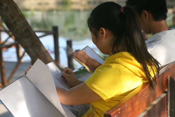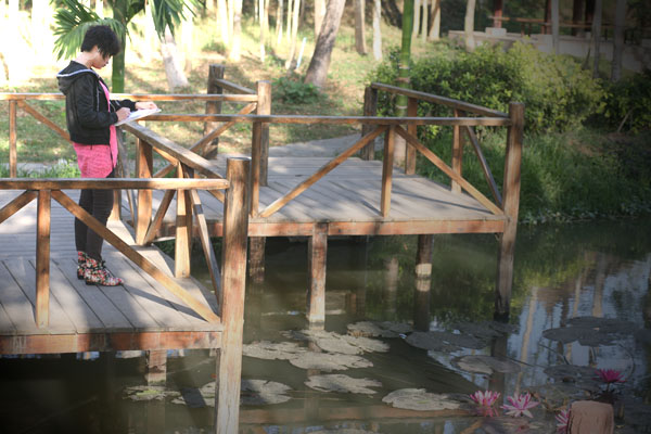 我手绿化我的家 假期的校园少了几分平日的热闹,凭添了更多温馨。每个清晨,沿着校园小路上走一走,总能遇到许多师生。有的夹着画板写生校园风光,有的带着英语书晨读,还有的散步、晨跑、打太极、网球、……每个人的脸上都带着灿烂的笑意,一声声亲切的“早上好”传递着师生员工之间浓浓的情谊。