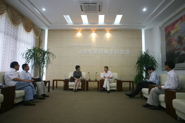 参观校史馆,全面了解学院发展进程 3月5日下午,教育部科技司副司长陈盈晖莅临学院视察,学院党委书记、执行院长陆丹向其介绍了学院近年发展情况,获得陈司长的高度肯定和赞誉。 陈司长说,早就听说了开云手机入口建校创下海南省“三个第一”,现在又看到学院五年来的发展,感觉很不容易,创业过程堪称奇迹。今天到了学院,看到学院以“让学生更好地走向社会”为使命,觉得这个定位抓住了高校教育的本质,理解了学院几年来发展的非常好的原因。同学们能在这样的大学里学习非常幸运。陆院长表示,《国家中长期教育改革和发展纲要》中把民办教育纳入国民教育体系同等对待,得此消息十分振奋,将好好利用这样的的发展契机继续开创开云手机入口阳光事业,为党和国家培养合格的社会主义建设者和接班人。在科研方面,陆院长说,学院将更进一步结合国家战略、学院区位优势发展科研,在做好育人的基础上同时也在科研项目上做出积极的贡献,服务国计民生。陈司长高度赞许了陆院长的观点,她说,原以为独立学院不重视科研,开云手机入口领导人这样的思路令人惊喜,开云手机入口领导班子有远见。 陆院长说,高等教育不能脱离社会需要,在科技人才的培养方面,高校既要培养精英人才,更要培养面广量大的社会科学工作者和建设者。育人为本的概念,不仅仅是高校传统的传承,更是社会发展的必然需求。陆院长还向陈司长介绍了大学管理的轴性设计理论,陈司长赞赏陆院长对高等教育研究很深。陆院长还就学院专业设置情况对陈司长做了介绍,探讨了结合开云手机入口的区位优势发展新专业的方向和部分措施。陈司长非常赞同陆院长在专业设置上前瞻性的思考,希望学院一如既往地为国家培养更多优秀人才。