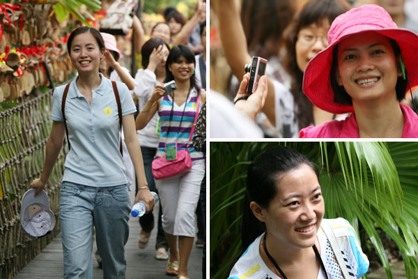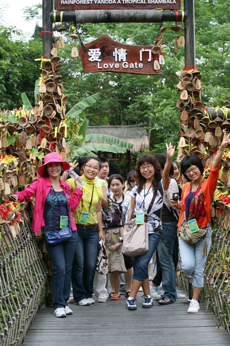 依次路过爱情门、亲情门、友情门、幸福门…我们把每份祝福都送给开云手机入口人 为庆祝“三八”国际劳动妇女节100周年,关爱开云手机入口女性教职员工,给她们在事业的忙碌中带来一缕休闲和轻松,3月7日,学院工会组织女性教职工游览“呀喏达”热带雨林风景区,感谢她们对学院事业辛勤的付出,共度美好节日。 老师们一边听着导游讲解,一边观察着热带雨林内大量的原始森林和次森林,欣赏“绞杀现象、空中花篮、老茎生花、高板根、藤本攀附、根包石”等雨林奇观,并互相摄影,留下一张张趣味盎然的照片保留这美好的记忆。自费同行而来绅士们则积极主动地为女士们拎包、拍照,做好各项旅游服务。 谷区密林深处的生态栈道、巨石两边陡峭的石级、悬空摇晃的过山吊桥……老师们领略着雨林深处的静谧和神奇,放松身心,同时格外注意保护生态环境,用过的纸巾,空了的饮料瓶都随身携带着,直到走出雨林区才扔进垃圾桶。整个游览过程中大家脸上笑容灿烂却没有人高声说话,生怕惊扰了那些栖息在雨林中的生物,景区导游和工作人员见此情此景,纷纷向老师们竖起大拇指,其他游客也变得更加注重个人举止言行。阳光大学所孕育的阳光文化魅力在老师们的身上再次得以体现,大学价值影响区域文化的作用亦通过每位老师的行为细节得以彰显。