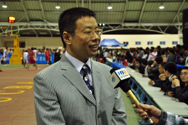 ucba篮球联盟总裁陆丹先生、国际级裁判员王锦明教授接受电视台采访