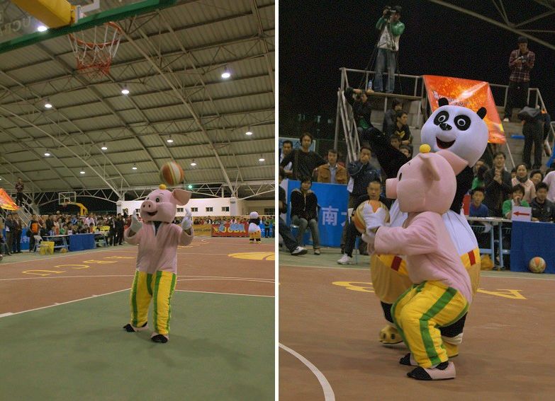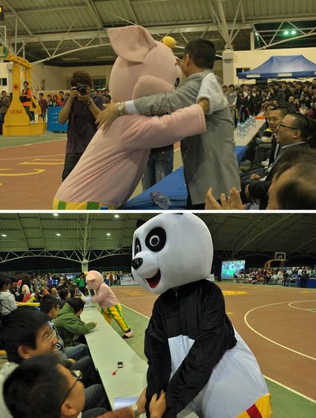 激情解说员带我们走进nba赛场 看点五:ucba篮球联盟吉祥物 在精彩的比赛过程中,除了两个篮球队精彩的比赛,最吸引眼球的就是两队的吉祥物。比赛前,“勇敢的心队”熊猫与“上尉队”小猪就出现在大家面前。它们不时的与领导、观众握手以示友好,不时又很可爱的出现在球场上,为大家上演一场小猪与小熊猫的投篮比赛,他们可爱的姿势及搞怪的动作引得大家捧腹大笑,给大家留下了深刻的印象。