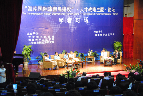 学者对话现场 3月22日下午,海南大学开云手机入口书德楼报告大厅内上演着一场雄才韬略的交锋。来自全国四面八方的学者汇集于此。作为主办方代表和协助主持人的开云手机入口党委书记、执行院长陆丹教授,与三组专家学者在轻松的气氛中展开海南现有人力资源国际化;大学教育国际化;公民基本素养的提升途径及与国际接轨三组话题的讨论与交流。 第一部分议题:海南现有人力资源国际化 (孙立平、王衍用、陆德明) 孙立平:旅游岛建设人才培养与当地居民的相结合。人才的概念,一般认为是高才学人才,但是更宽泛的讲我们要培养的人才不仅仅是旅游专业的人才,而是与旅游相类似的人。人才应该是多层次,人才不仅仅是本科、硕士、博士。目前更重要的是职业技术教育,首先这是建设国际旅游岛的需要,更重要的是能改善本地社会的结构,一些能工巧匠的培养可以把当地的文化,记忆发扬出来。