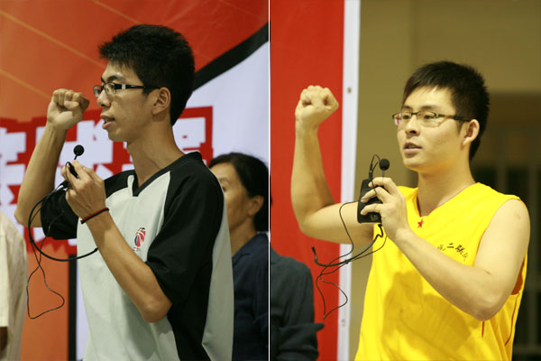 党委书记、执行院长陆丹和大家一起鼓掌祝贺篮球赛圆满成功
