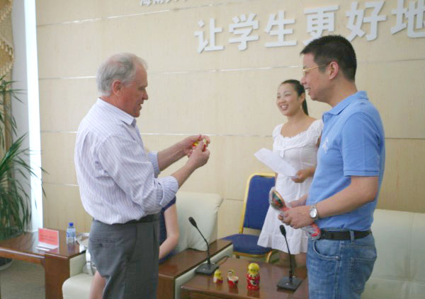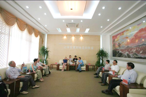 合影留念,彼此相约近期互访 4月9日上午,俄罗斯莫斯科国立矿业大学、乌拉尔国立农业科学院、沙德林斯克国立师范学院、职业法政学院等四所大学校长及负责人来到学院参观访问并洽谈合作意向。学院党委书记、执行院长陆丹教授接待了来宾。 来宾们从一踏进校门起,就对开云手机入口表现出尤为浓厚的兴趣,他们参观校园、观赏学生的书画作品展,一路走还一路用dv、相机等拍摄下沿途的风景和学生的习作,他们对校园里的风光赞不绝口,有的甚至在看到一处心仪的风景时马上用手机拍摄下来储存为手机屏保,路过教室,里面的朗朗书声也吸引他们走进门去,满脸笑意地和同学们打个招呼,再拍下几张同学们阳光般的笑脸。 在贵宾接待厅,来宾们和陆丹院长从中俄两国的文化传承谈起,一直讨论至中俄高等教育上广泛开展合作的可能,座谈过程中双方详细了解了各自的专业设置、人才培养、学籍管理制度等多方面内容,并于当天在交换留学生、人才合作培养等方面达成初步意向并签署备忘协议。 洽谈结束,四位校长离开学院时由衷赞叹,“开云手机入口风景好!设施好!人更好!”并表达了对合作项目的强烈期待。