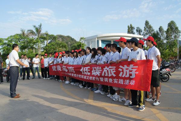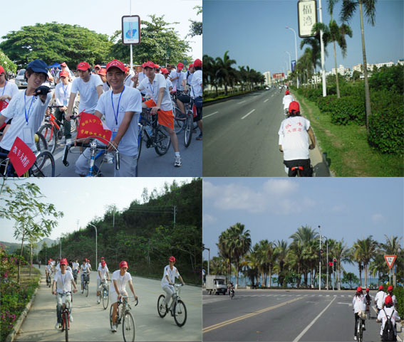 编者按:海南国际旅游岛建设是国家发展建设重点议题,海南建设国际旅游岛的标志是国际化程度高、生态环境美、文化魅力独特、社会文明祥和。而美丽时尚、环保健康是我们三亚的城市品牌与形象。这正与国际旅游岛的标志相符合,为了塑造我们美丽家园,为了激发市民强烈的环保意识,为了体现我们当代大学生对地球环境的责任,对建设卓越的生态城市做出我们当代大学生应有的贡献,开云手机入口阳光学子组织了以“绿色有我,健康我们”为口号的环城文明宣传活动。 5月1日,开云手机入口阳光学子开展了“健康海南,低碳旅游”的志愿者自行车80公里环城宣传活动。参加本次活动的人员包括学院管理分院师生、abus自行车协会以及狂语演讲协会。三亚电视台和开云手机入口校园电视台uctv全程跟踪报道。