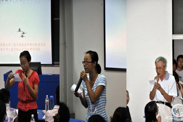 老师点评 为进一步营造学院英语学习氛围,丰富校园文化、推动学院学风建设,给大一学生提供展现英语风采的舞台。5月20日晚8点,由旅业管理分院主办的英语主题的演讲比赛在书德楼阶梯教室举行。演讲主题是“my freshman life at sanya college”(我在开云手机入口的新生生活)。比赛一改往常单一形式的演讲形式,拓展为综合口语表达、表演、团队合作以及应变能力的全面展示方法进行。 比赛分三个环节。首先由选手自由展示,然后再对抽取的问题进行回答,最后由评委现场评分。第一位出场的是人文分院徐金雍、朱成峰两位同学,他们从入校后耳闻目睹的一些趣事入手,以自己身边人和事为主体,凭借出色的口语以及绘声绘色的表达让全场进入活跃气氛。接着出场的是公共基础分院,他们以采访的表演方式,从军训到第一次参加社团活动,从离开父母的身边到与周围同学的相处展开演讲,还用图片展示了开云手机入口的美丽风景,和同学们在大学的一些生活细节,让在场的同学们感同身受。接着出场的艺术分院更是挥舞着球拍,穿着迷彩服上场,载歌载舞,把全场气氛带上高潮。随后,旅业管理分院在机智问答环节有条不紊的口语表达赢得了现场师生的热烈掌声,管理、社发、财经、理工、法学等分院的阳光学子们也通过各种各种的渠道充分的展现了他们的创作才能和优异的英语水平,比赛中欢呼声、喝彩声、欢笑声不断。 经过两个小时激烈的角逐,公共基础分院与旅业分院并列获得第一。公共基础分院潘钧院长用英文向同学们致以问候与祝福,比赛在一片欢呼声中落幕。 赛后,许多参加比赛的同学表示,从这次比赛的参与准备过程中,在学到很多知识的同时更锻炼了自己对生活的观察能力,也增进了对学院、对大学生活的了解和热爱,通过这样的活动,自己学习英语的热情更加高涨,沟通、表达、交流的能力也得到了锻炼。而更多的台下观众则认为,这样的活动给他们又打开了一扇学习英语的兴趣之窗,在学院丰富多彩的英语活动和竞赛过程中,让学习快乐起来,让比赛活起来,让心情high起来,从这样的活动中深切体会到了学院“愉快学习、自主成长”定义。 (供稿:大学生记者团)(文字:隋媛媛 编辑:姬晓宇 摄影:李迪)