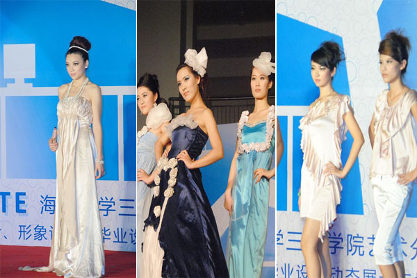 用作品展示我们所学 5月20日晚,海南大学开云手机入口艺术分院2010届毕业设计作品展在书德楼隆重举行。学院领导、师生、岛内艺术界、企业界人士、媒体记者都来到现场,共同见证阳光学子们四年来的收获。据了解,本次艺术分院2010届毕业设计作品展会持续16天,将展出平面设计、形象设计、服装设计等专业毕业生的近千幅作品。 19时30分,活动正式开始。2010届优秀毕业生代表用充满感谢的话语表达了对母校的情思,她说:“作为开云手机入口的学子,我们同年轻的学院一起成长,一同进步。大学四年,我们掌握了专业技能、锻炼了实践能力。今天,我们将自己的毕业作品展现给同学、老师和母校,不久后,我们将以更加坚定、更加从容的步履走向社会,请母校放心。” 艺术分院副院长陈博为此次毕业设计作品展致辞并宣布开幕。嘉宾们手握高脚杯,步入白鹭溪美术馆,一边品味红酒的优雅,一边欣赏优秀毕业作品,并交流对艺术作品的看法。学院副院长秦杰锋在参观完作品展接受记者采访时深有感受地说:“看到同学们的毕业作品,我十分欣慰。我院人才培养的方向很明确,就是要与企业相结合,培养出一批又一批创新型与实用型人才。”在谈到海南国际旅游岛建设时,他说,海南的发展需要更好的人文环境,需要有思想、有创新的人才,我们学院的阳光学子要不断加强自身人格塑造与创新能力的培养,走向社会后,更好地为企业服务、为建设国际旅游岛服务。 随后,艺术设计(服装与皮具设计、形象设计)毕业设计动态展示专场正式开始。此次展示的主题为“鹭溪循梦”,分为五组进行展示:缘·梦,魅·惑,意·韵,非·花和重·生。“缘·梦”的设计理念是在浪漫优雅中透露开放,如梦般美幻;“魅·惑”表现了现代女性的可爱、成熟以及对过往时光的回味;“意·韵”的创作灵感来自生活与自然,是自由与洒脱的完美结合;“非·花”,女孩穿上圣洁的婚纱,将自己和花一同出嫁;“重·生”前卫的设计理念带领我们走入未来时代。一场充满智慧与创新的时尚秀,为炎热的夜晚带来了一丝清凉,一丝感动,衷心祝福2010届毕业生在今后的人生路上继续奋斗、开拓更加绚丽多彩的明天! 明年凤凰花又开,我院又将送走一批优秀的毕业生。阳光学府会源源不断地社会输送创新型与实用型人才,为海南社会、经济、人文和科技的发展担当一份责任,贡献一份力量。