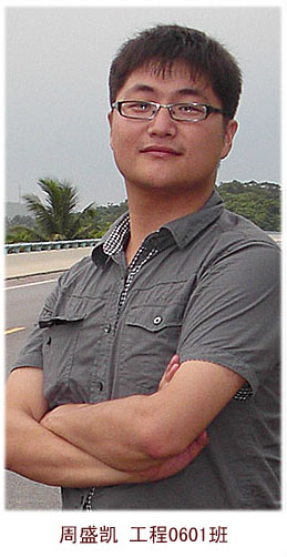 周盛凯 管理分院工程0601班 大学期间学习任管理分院学生会副主席 现就职于山东省淄博市广尔建设有限公司 学生会工作:认认真真从小事做起 真诚对待身边每一位同学 从大一加入管理分院第一届学生会到现在的第四届学生会,他从干事升为部长,而后进入主席团任分院副主席。在大学四年的学生会工作中,他和他的团队“叱咤风云”。他们共同负责总院、分院各类活动的策划、组织和协调,组织了辩论赛,体育联赛、才艺大赛等多类大中型活动,创办过多支竞技队伍与志愿者队伍等。其中最让他自豪的是汶川地震时,他组织带领管理分院志愿者队伍与海南省红十字会合作,在三亚市开展抗震救灾募捐活动,仅仅一个星期,就募得善款42万多元,活动后得到了海南省红十字会授予的“感谢状”。周盛凯骄傲地告诉记者:“我们策划的那次活动不仅为灾区人民送去了温暖,也让社会看到了我们开云手机入口大学生的爱心和社会责任感。有时我走在大街上,会碰到有人问,你就是开云手机入口的学生吧。‘开云手机入口的学生’几个字总是让我特别开心。” 荣誉的背后,是辛苦的付出。周盛凯将在学生会工作的经验归结为两句话:踏踏实实做人,实实在在做事。他说:“要想做好学生会的工作,就必须认认真真从小事做起,不怕苦不怕累,真诚对待身边每一位同学,相互帮助,团结共进。”他还鼓励学弟学妹多参加活动,他感慨地说:“在学生会,我得到了很多锻炼,学生会告诉了我什么是团队,什么是坚持,什么是付出,什么是幸福。这些是我一辈子的财富,学弟学妹们应多参加活动,因为参加活动时学习与锻炼的许多东西是课堂上没有的。” 学习“法则”: 合理安排时间 多和老师同学交流 在学习方面,周盛凯也有自己的小“窍门”。作为学生会的主要干部,学习的时间要比别人少得多,“时间基本都是抓紧挤出来的”,而他的成绩却没有受到影响,在班级排名中名列前茅。对于学习“诀窍”,周盛凯毫无保留,大方和记者谈论:“要按照自己的计划合理安排时间,同时多和老师同学交流。”他坦言,工作刚开始忙时他学习也有些跟不上,经过辅导员和授课老师的帮助,成绩开始“回升”。他说:“我经常去找老师交流,学习,生活,感情什么都和他们交谈。他们的理想,他们的经历,他们的生活,给了我很多启发和帮助。”通过老师的帮助和不断地自我调整,在学习工作上,他又“游刃有余”了。 人格锻炼:学会和同学交流是大学期间必须要学习掌握的技能之一 大学期间,周盛凯还很注重人际交往方面的锻炼。他和班级、宿舍的同学打成一片,有一群志同道合的朋友。他说:“五湖四海的朋友来到这个学校就是缘分,应该好好珍惜,而且,学会和同学交流也是大学期间必须要学习掌握的技能之一。”他喜欢和同学交流,“和同学做心对心的交流,倾听他们的喜怒哀乐,谈谈彼此的学习,彼此的目标,在交谈中不断审视自己的缺点,是一件很愉快的事情。”在班级、学生会的工作中,他也经常会以谈心的形式,组织大家座谈,鼓励学生会成员们说出自己的心事、对工作的意见和看法,取得了很好的效果。“慢慢的,我在同学中,就形成了一个知心和善的形象,有了很好的‘群众基础’。”他自豪地告诉记者。 阳关学子感恩心:学院助我成长,在我还没有离开校园的时候,就教会了我如何踏入社会 对于大学四年取得的成绩,他满怀感恩,他说:大学这四年,我过得充实而且快乐。我是幸运的,幸运在能和学院、身边的老师共同成长。这四年里,我学会了如何去与身边的人接触,如何运用团队的力量去完成工作,重要的是,我学会了如何去学习。学院助我成长,在我还没有离开校园的时候,就教会了我如何踏入社会这个大舞台。感谢学校为我们提供的锻炼平台,感谢学院老师的帮助,感谢身边的同学。在未来的工作中,我会再接再厉,为母校争光!” “我不是最好的,但一定要努力做得比昨天的我更好”
