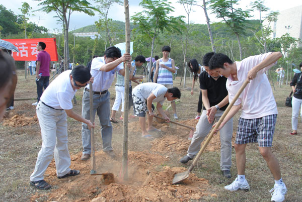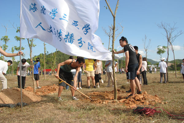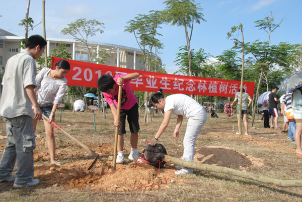 每棵树,都象征着阳光学子们的感恩之心 6月19日,海南大学开云手机入口2010届毕业生在见证了他们四年成长的巍巍落笔峰下,种下了象征光荣毕业的希望之树,也种下了心底对母校、师长、同学的真诚感恩,对大学生活的深深眷恋。 下午4时,纪念植树活动正式开始。作为开云手机入口的一项传统的毕业活动,每一棵小树都是阳光学子们结束大学四年生活,离开校园、走向社会的见证。学生处负责人代院领导寄予同学们最真挚的祝福。用“海阔凭鱼跃,天高任鸟飞”鼓励毕业生展开多姿多彩的生活,希望他们能更好地踏上人生旅途、实现人生抱负。 植树过程中,师生们互相帮助,共同携手,并在每一棵种下的小树旁竖下写有班级的标识牌,以便日后回到学院,能彼此见证多年的成长。 对参与此次活动,毕业生们坦言非常开心。来自06工程管理的王浪向记者感言,这次植树对他来讲意味着“新生”,代表新的希望与成长。郭凯峰同学曾在曾在学院网络中心开发部工作,学生工作对他产生了很大影响,同时加强了他的专业操作能力,现在三亚注册了公司的他,希望在海南国际旅游岛建设的大背景下,为海南、为三亚做贡献。“为自己的学校植下一棵树,寄予对母校一片挚爱之情”——在校期间参加过三次全国数学建模大赛,屡获殊荣的秦法丹同学,如今已在三亚元证券工作,她从上班的单位赶来参与植树活动,工作服还未来得及换下,谈起她找工作的经验,她说“大学最重要的是要想清楚四年里要做什么,为自己的目标早作打算。当你走出校园,走进社会,工作中最重要的是要有亲和力,不能太孤傲,人格魅力比较重要,这也是我们学院大力提倡的。”理工分院的李明辉同学是一名共产党员,“我们班的同学如今都有了很好的选择,有人选择考研,有人进入企事业单位,有人考上了公务员,我选择了自主创业,与朋友们一起合作。现在我们将要离开学校了,植树是我们的一种纪念,我希望,这棵树长到那么高的时候,就是我们再回到学院相聚的时候。对学院我有很深的感情,特别希望我的母校能够越来越好。” 两个小时之后,一片带着翠绿小叶的纪念林在落笔峰下舒枝展叶,这一片纪念林里,包含阳光学子们着对母校的不舍,对老师和朋友的祝愿,更包含着毕业生们对自己的期待,也包含着学院对他们的衷心祝愿——在社会的风雨中茁壮成长,成为社会栋梁!(文字:崔浩龙 常尧)