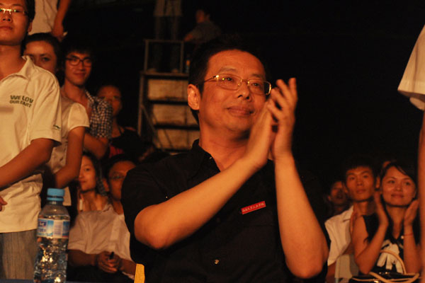 陆丹院长为精彩的节目鼓掌 露出欣慰的笑容