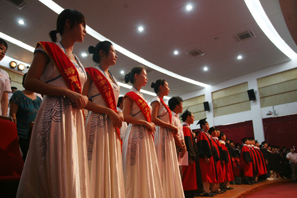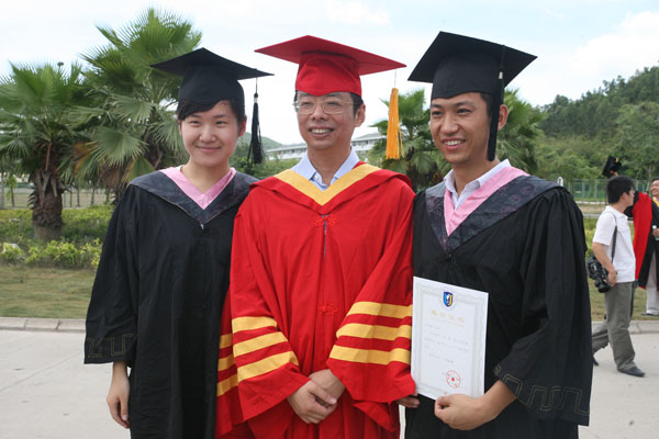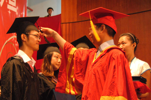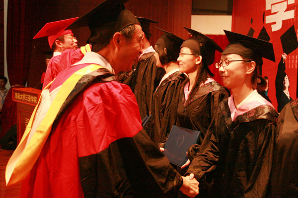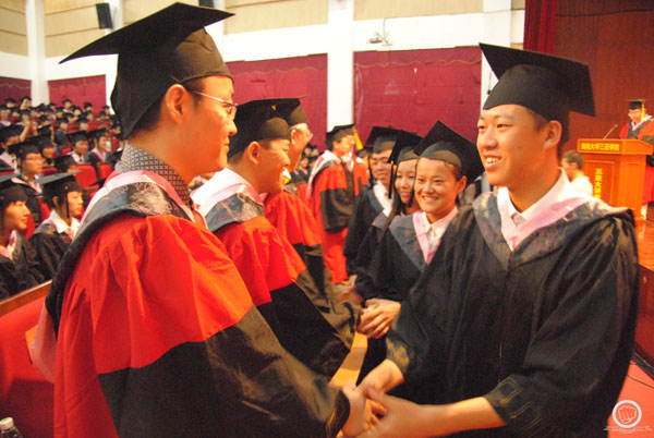 陆丹院长为毕业生拨过帽穗,祝贺他们学有所成