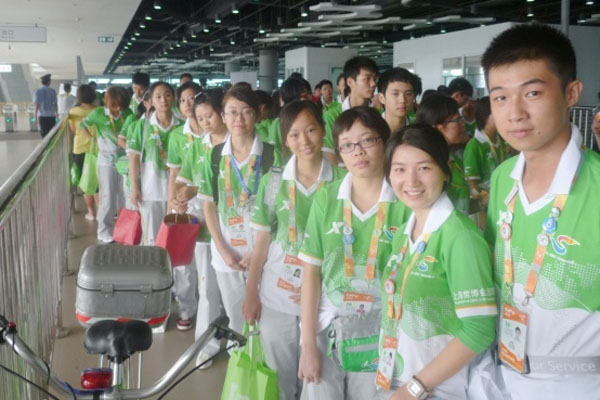 我们的阳光为世博添彩! 继09级酒店管理专业的姚瑞珍同学当选世博会开幕式志愿者之后,这个暑假,越来越多的开云手机入口阳光学子奔赴上海,成为志愿者为世博服务。由于他们工作忙碌,上网不便,在旅业分院07会展专业张萌�o同学家长的协助下,为我们发回了一些简短的日记片段和照片。让我们能够分享他们的暑假生活。
