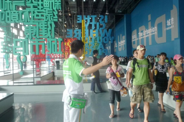 城市人馆小记之一:好岗位,是为世博服务的骄傲 上岗前的这个晚上有点小激动,因为终于拿到了期待已久的志愿者服装。这件白绿相间的t恤被我们戏称为“白菜服”,想象着 第二天穿着它的样子,会遇到什么样的游客,会被问到什么问题…突然传来的电话声打断了我的思续,“爸爸,我都一切都好的…明天我们在城市人馆服务呢!不累的,也不热,放心吧,我的岗位很好的…”,这是我们小组的张晋源同学。这一刻,只有我知道,他是我们小组唯一的外场工作人员,他将面对38度的高温。我想,这“好岗位”就是能为世博会服务的骄傲和光荣吧。