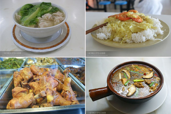 食堂提供的各色美食 学院一共有五个食堂,提供祖国各地的不同风味美食,除正餐外,甜品、饮料、烧烤等应有尽有。还特别设有清真食堂窗口满足部分少数民族师生的饮食需要。