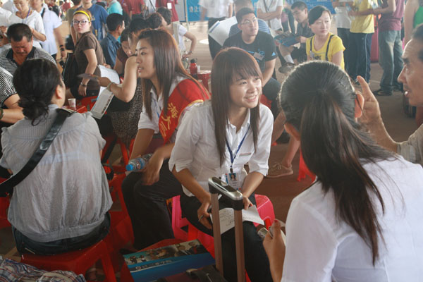耐心解答家长提问 阳光学长们的真诚服务得到了大家的好评,播音主持专业的学生聂海清激动地告诉记者,“三亚是一个非常美丽的城市,来到这里一路上有很多学长学姐的热情帮助,觉得他们十分热心,而且十分负责,我也希望能加入这样的队伍,明年能为我的学弟学妹们服务。” 在接受采访时,一位迎新人员笑着说:“不辛苦,这是我们的责任,也是义务,去年我们还是新生的时候学姐学长也是这样迎接我们的。” 截止到记者发稿时,首个迎新日接待新生2782人,新生报到将陆续在今后两天内完成。各岗位迎新工作者将以饱满的精神投入到下一个工作日中,以高效便捷的贴心服务迎接每位新生。 美丽三亚、落笔华章,新的曙光已经升起,让我们共同祝愿这片蕴育希望的阳光热土更加灿烂辉煌! 未来两天我们将发回新生报到系列文章,敬请关注。 (文:大学生通讯社 张姗姗 张丽 钱丽萍 大学生记者团 崔浩龙)(摄影:大学生通讯社 李少哲 杜俊儒 大学生记者团 樊迪)(编辑:於丹)