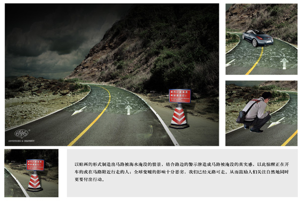 佳作作品《全球暖化公益广告设计-海水淹没》