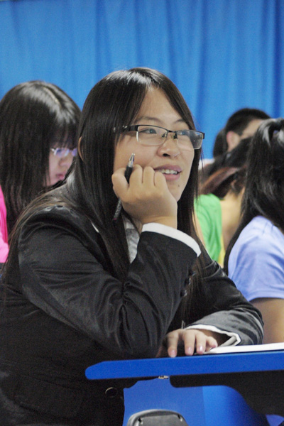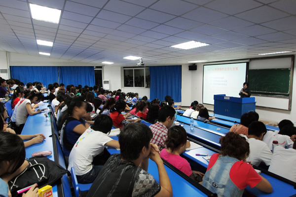 讲座现场坐无虚席 贴近学习生活的心理讲座广受同学们的欢迎 讲座在轻松愉快的氛围中进行,王威教授首先讲述了健康人格的重要性,她说,“假如从生命的起点直至终点,都拥有健康的心理,成功与幸福将伴你一生”。接着她从环境改变与心理适应的问题、人际交往问题、情绪困扰问题等七个大学生活中经常碰到的问题,从智力、情感、生理上为同学们进行了具体的讲解。深入浅出地讲课,贴近生活的具体的事例,以及课堂中穿插的简单易做的放松小技巧使同学们完全沉浸于讲座中。