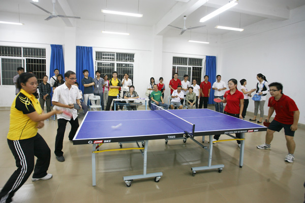 11月29日19点30分,我校体育欢乐节的第一站——教职工乒乓球决赛在东区体育馆举行,比赛扣人心弦,精彩异常。教职工们对此次活动的举办给予了极高的评价。 此次决赛分为机关队和公共基础学院的冠亚军争夺赛以及理工学院与财经学院的季军争夺赛,两场比赛同时进行。赛场之激烈从观众高分贝的喝彩欢呼声中可见一斑,毋庸赘言。比赛间隙,兴奋队员们与其他“各方代表”向记者畅谈了心中感受,热情肯定了此次活动。
