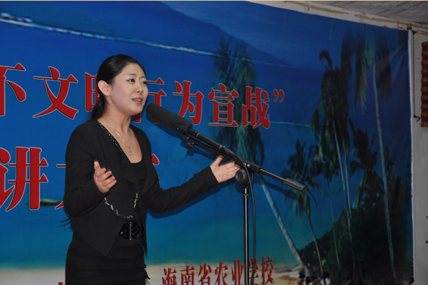记者从刚刚结束的由海南省教育厅举办的“建设国际旅游岛,向不文明行为宣战”的大型文明礼仪演讲比赛活动中获悉,我校学子唐泽慧同学凭借出色表现,从众多参赛者中脱颖而出,荣获大学生组一等奖。