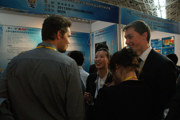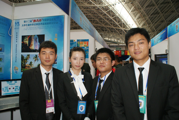 多名商家关注我校研究成果,纷纷表示愿建立长期合作关系 参赛期间,有682件参赛作品和570件展示作品齐聚大连理工大学刘长春体育馆,接受评委和社会各届专家的一轮又一轮的检验和评审。在比赛的四天里,我校的四位同学和带队老师充分利用这一展示平台,与国内外及港澳地区的名校进行了友好交流,期间还应大连理工大学的邀请参加了国际青年论坛等一系列高水平论坛。 经过四天的评审,《基于无线传感网的智能灌溉与报警系统》这一作品最终不负众望,从众多参赛作品中脱颖而出荣获全国三等奖。“看着我们的校旗作为同类院校最好成绩和清华北大等国内知名院校的校旗并排挥舞在颁奖舞台上时,我们激动的抱在了一起,跳着、笑着、欢呼着!”带队老师和同学们的兴奋之情溢于言表。这是我校的学生科技作品首次在代表全国学生创新能力最高水平的舞台上崭露头角并获殊荣,获得各高校的广泛好评。