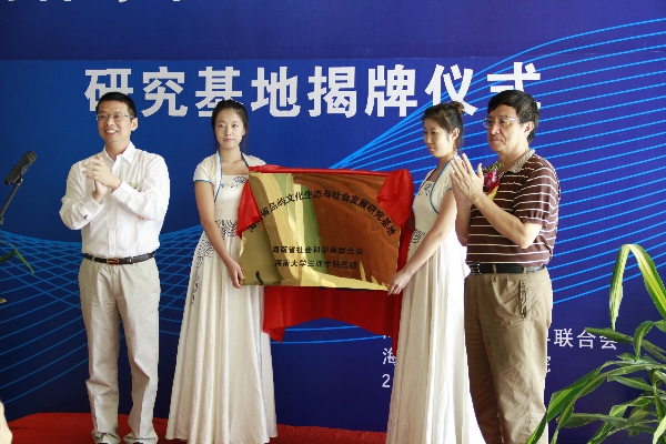 赵康太首先宣布海南省岛屿文化生态与社会发展研究基地正式成立,并代表社科联对基地落户我校表示热烈祝贺。他表示,研究基地有广阔的发展前景和提升潜力,它的建成对海南社会文化的保护与发展,以及国家旅游岛建设具有重大意义,并希望研究基地能够可持续发展。