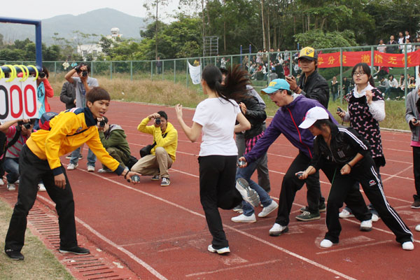 在体育欢乐节开幕式唱响了运动的序曲之后,阳光明媚的校园里上演了一场场精彩夺目的运动赛事,本次体育欢乐节共分教师、学生两大类比赛,涉及田径、趣味运动、集体活动等多个项目,时间跨度长、参与人数多、竞赛形式丰富,真正的达到了在课堂内外全方位引导学生形成健康人格、愉快学习的目标。全体参赛运动员们在比赛中顽强拼搏,尽显阳光风采,多项赛事记录被打破,最终管理学院捧得学生团体第一名。 以下是记者们从赛场拍摄的学生组精彩图片,编辑如下,与您共享体育盛宴: