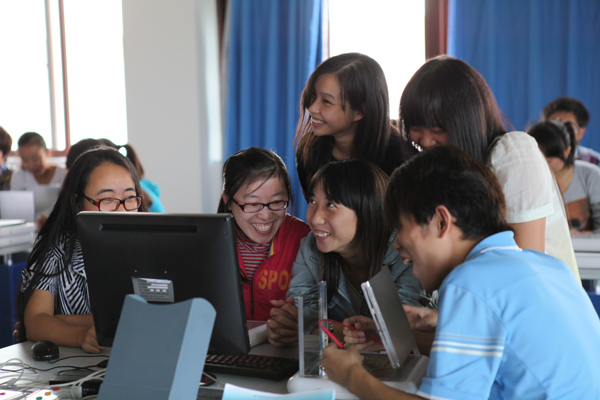 同学们对知识充满着渴求 迎新貌 学期伊始,社区工作站早已做好了对返校生的登记,确保学生都安全到校;各学院陆续召开了新学期的第一次班会,鼓励同学们做好新学期的规划;辅导老师们也做好了学生们的思想工作,让学子们用最饱满的精神迎接新学期的到来。不管是课堂还是社区,学校教学与行政管理机构按照新学年学校内涵发展对“学风建设年”的总体要求,积极将各项措施落到实处。 第一天上课,学校教学管理中心巡查课堂情况,整体教学秩序井然,学生精神面貌良好。师生都能够提前到达教室并做好课前准备,教室座无虚席,大部分班级出勤率达到100%,课堂上气氛热烈,师生交流不断。 记者在课下走访中了解到,社区的工作和服务也有了新举措。辅导老师办公地点前置学生社区,更近地沟通、更贴心地服务,开创班级管理新路子。 添新资 来到学校,很多学生会惊喜地发现校园里增添了很多新资源。首先,图书馆里又增添了大批新书籍和电脑,满足大家更广泛的阅览需求,同时方便了对学习资料的检索。北校区临时分馆的设立带来的不仅是藏书量的增加,更为师生们书籍借阅的“南北互通”提供了便利。 此外,重新规划扩建的计算中心和实验中心让同学们欢喜不已。崭新的实验设施、先进的设备,帮助同学们将书本知识与实际操作相结合,在实验模拟中把知识融会贯通。