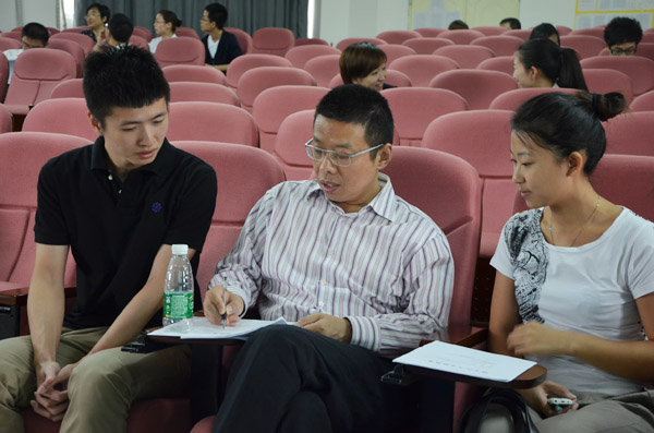 研究生们分别与自己的导师进行面对面的交流 最后,研究生们分别与自己的导师进行了面对面交流。据了解,他们将对企业转型时期战略人力资源管理对策、中国自主汽车品牌价值提升、中国汽车市场营销渠道模式、帝豪汽车二级网络规划、宁波基地核心竞争力研究等和吉利发展息息相关的问题进行研究。 (文:大学生记者团 张�F蕾 梁晨)(图:大学生记者团 郑岑宁 陈昶君)