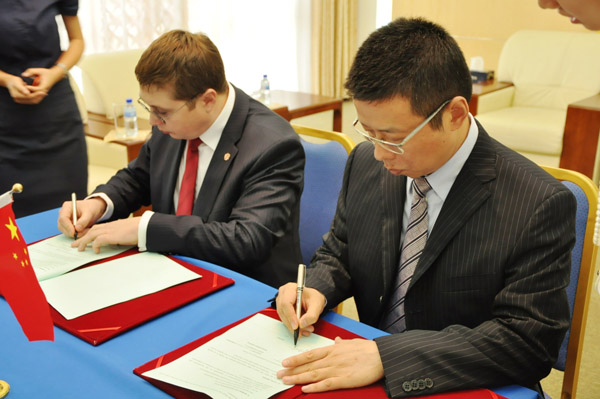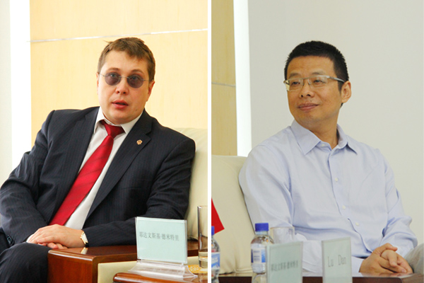 耶达文斯基先生与校领导陆丹就两校在国际合作方面的建设交换意见