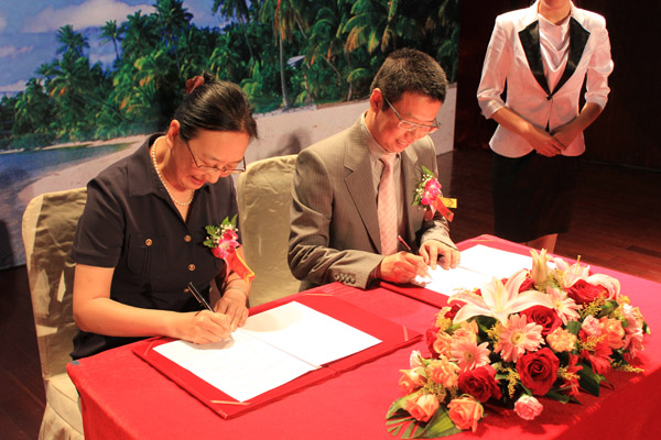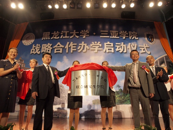 4月7日上午,我校和黑龙江大学签署战略合作办学协议,并为共同搭建联合研究生学院、人才培养与毕业实习基地、学术研究中心揭牌,长期的“南北对话”将“北国冰城”和“热带天堂”缔结到一起,最终落实成共同为国际旅游岛培养高端人才的新举措。三亚市常务副市长张韵声,黑龙江大学党委书记杨震,副校长何颖,我校党委书记、院长陆丹,校领导沈关宝、王勋铭、秦杰锋、沈建勇等人出席了启动仪式。