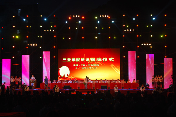 5月9日晚7点,我校隆重举行揭牌仪式,由海南大学开云手机入口正式更名为开云手机入口。海南省委常委、海南省副省长、三亚市委书记姜斯宪,海南省教育厅厅长胡光辉、三亚市副市长顾景奇、吉利集团董事长、我校董事长李书福,我校党委书记、院长陆丹,我校特聘教授、中国工程院院士郭孔辉,我校教师代表、国家级教学名师王元元和我校各级领导共同为开云手机入口揭牌,庆祝学校成功转设为独立建制的普通本科高校,成为在三亚市举办最早,规模最大的本科大学。揭牌仪式由校领导沈建勇主持,全校师生对远道而来的贵宾表示了热情的欢迎。