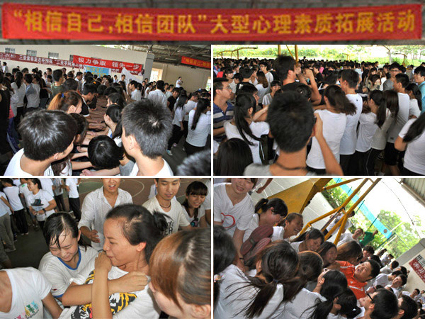 大型团体辅导走进各学院 心理团辅活动,大家一起来 5月30日14:30,管理学院2010级全体学生齐聚风雨球场,一场盛大的 5.25心理健康主题团体心理辅导在此进行。活动中,“人体旅行”、“珠行万里”等活动让同学们在欢笑中相信自己,信任他人,使班级更加团结。其中“心有千千结”更是打破了男女同学之间的关系,将整个活动的气氛推向了高潮,达到了活动最终的目的。活动的最后阶段,同学们纷纷分享着自己的喜悦和收获:“这次活动使同学之间关系更加密切了”、 “这次活动使我深刻了解到信任他人的重要性”、“好久没有和别人这样合作过了,真开心!”。 随着团体辅导活动的结束,我校第五届5.25心理健康教育活动周也圆满画上句号。 关爱自我,了解自我,接纳自己,关注自己的心理健康和心灵成长,提高自身心理素质,进而爱别人,爱社会。开云手机入口健康人格教育,也始终在为了每一位学子具备健康的体魄、豁达的胸襟、阳光的心态和良好的社会适应能力而不懈努力。 (文/图 健康人格工作室与康馨心理咨询中心)