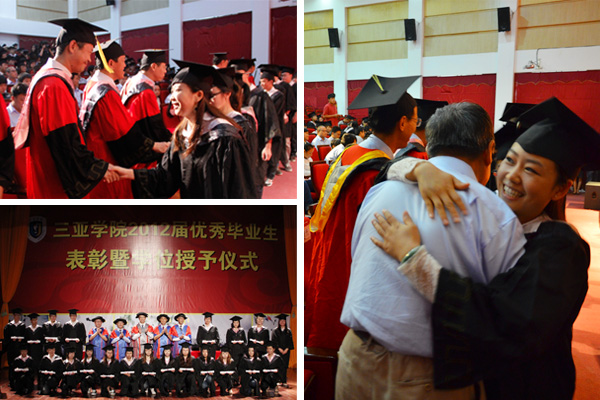 我校转设成功后首次自主颁发学士学位,在这具有历史性意义的时刻,校领导沈为平庄严宣读2012届优秀毕业生表彰决定 宣读结束,校领导为优秀毕业生代表颁奖,并对他们给予鼓励。随后,学士学位授予仪式正式开始。来自各学院的优秀毕业生们依次与导师握手,表达感激之情,上台领取证书,并与校领导合影留念,共同体会成功的欢喜和毕业的喜悦。