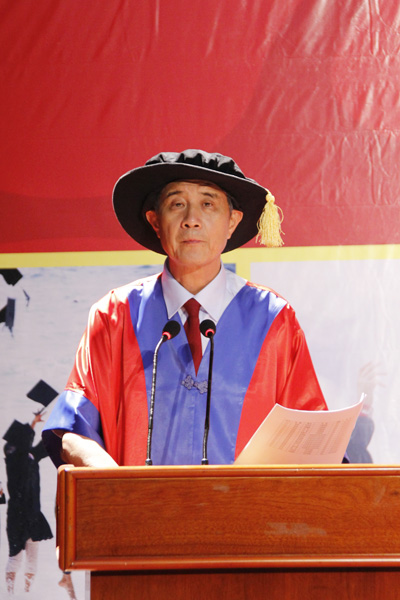 陆丹院长衷心的祝福全体2012届毕业生,并勉励阳光学子们不断提升与突破自我,勇担社会责任 陆丹院长在大会最后作了重要讲话,他对获得我校独立设制以来第一次自主颁发学士学位证书的优秀学员代表表示祝贺,也对我校全体毕业生表示衷心的祝福。同时,他也给所有毕业生带去了关于未来更深刻的思考。他强调,“在座各位都是优秀的毕业生,但优秀永远是相对的,大学有自己的目标,要为未来培养人才,大学为了能让学生适应社会,提供了各种掌握知识的工具,同时,也希望给学生带去超功利的价值,使两者之间得到调和。因此,大学以向学生传授系统知识为己任,大学教育是为了让学生更好地走向社会打下基础。但是当我们走上社会以后,大学对毕业生的评价和社会对工作者的评价又是两个概念。面对社会的发展和市场的需要,同学们难免会再次遇到“我们的优势又在哪里,我们的优秀又在哪里?”的问题,引发对“优秀”这个概念的全新认识和重新考量。 他激励所有毕业生们:“我们的理想要更高,意志要更坚定,知识要更丰富,人格要更健康。”陆丹院长还表示,“在全球化的大背景下,我们的优秀是时代的优秀。全球化在带来了现代化新的成就的同时也存在着风险,我们按全球共识的目标思考着,行为着,而在学校所获得的知识,是在未来道路上给予你的知识支撑,价值支撑,只有在这个基础上不断前进和突破,才能永久优秀,挖掘潜力,彰显自我。但是,在这条道路上,我们也因注重公德,不因欲望而失德,要在适合的尺度内追求自我的价值。”讲话最后,陆院长表达了期望和祝福。他希望同学们铭记老师们的千言万语,并强调光辉的成功后总是充满辛劳、艰苦、风险和挑战的,我们要有正确的态度和足够的能力面对一切,并以“无论我们是否身处逆境,面对迷惘,我们都要用明亮的眼睛去寻找光明。”与大家共勉。