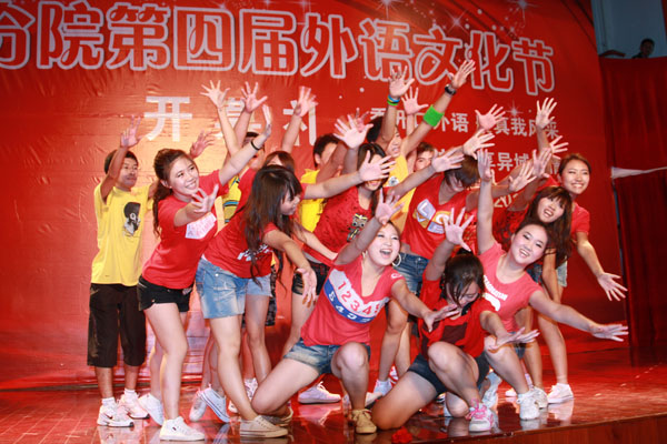 外国语学院品牌活动——外语文化节开幕式 为适应经济社会对应用型英语人才的需求,英语专业把提高学生的英语综合能力作为重要教学目标之一,把全方位、全过程的开口英语作为实现这个目标的突破口。保证让学生天天听到英语,天天看见英语,天天有机会说英语。在突出“开口说英语”的教学特色方面采取的措施有组织学生进行晨读,在课堂教学中及时纠正语音,在课程设置中组织小组讨论、课前演讲等;同时,积极开展第二课堂教学活动,如举办英语平台、语言实验室、英语社区等;制定专业教师与外籍教师课后坐班制,加强学生口语训练的辅导;组织演讲、英文歌曲、话剧、配音等比赛。