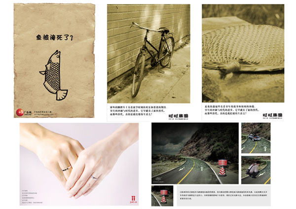 广告学子参加全球华人广告大赛“金犊奖“连年获奖,图为部分获奖作品