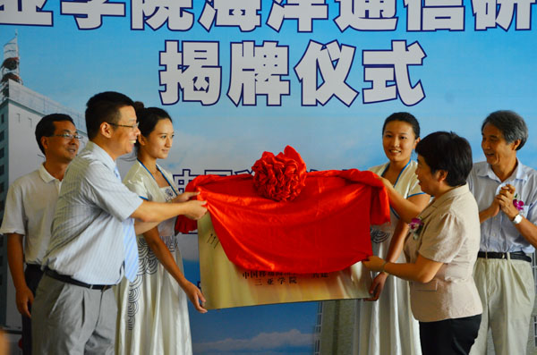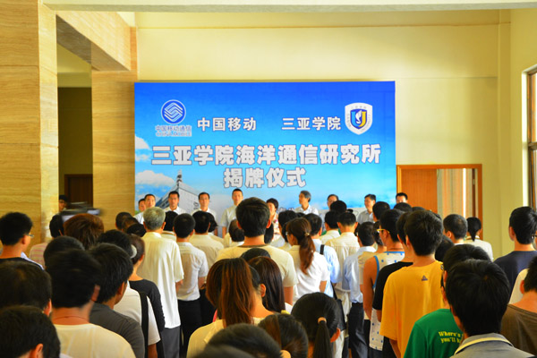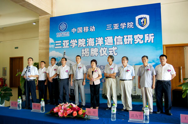 9月19日上午,我校与中国移动海南公司共建的“海洋通信研究所”揭牌仪式在书海馆举行。中国移动海南公司总经理陆冰、副总经理张冬、集团客户部总经理冯云峰、网络部副总经理陈敏、中国移动海南公司三亚分公司总经理林明球,我校党委书记、院长陆丹、校领导沈为平、王勋铭、理工学院院长兼海洋通信研究所所长吕振肃,以及部分师生代表出席了本次揭牌仪式。揭牌仪式由科研处处长谌林主持。 揭牌仪式上,陆丹院长和陆冰经理共同为海洋通信研究所揭牌,开启校企深度合作新里程。