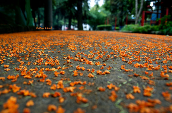 走过书新5号楼前这条熟悉的校道,踩着散落在路两旁的花蕊,想起了我们曾无数次欢笑着上下课的身影。