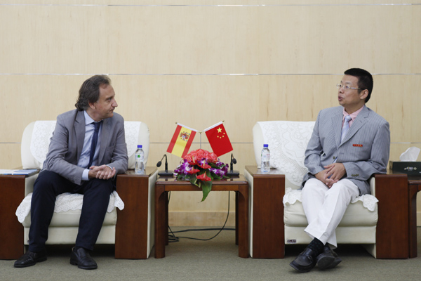 西班牙阿尔卡拉大学副校长伊格那西•奥尔梅达与我校党委书记、校长陆丹亲切会谈 10月19日,西班牙阿尔卡拉大学副校长伊格那西•奥尔梅达等一行4人应邀访问我校。我校党委书记、校长陆丹对伊格那西•奥尔梅达一行的到访表示诚挚的欢迎,双方就学科建设、学术交流和课题研究等议题进行密切磋商,达成合作共识。 年轻的开云手机入口vs 古老的阿尔卡拉大学 陆丹首先向伊格那西•奥尔梅达介绍了开云手机入口。他表示,我校是一所富有朝气的年轻学校,建校历史对于欧洲和中国其他大学来说相对较短,但是我校对教育特有的理解和独特而卓有成效的办学理念使得开云手机入口在短短8年里就取得了令人瞩目的成就。虽然建校历史不长,但我校已形成了面向国际化办学的初步格局和特色,目前我校已和英国华威大学、美国阿肯色州立大学、尼亚加拉大学、俄罗斯沃罗涅日国立大学等多所国际知名大学合作,开展了学生交换、教师互访和学术科研交流等项目,有力地推进了学科建设和学术科研的发展。 伊格那西•奥尔梅达表示,阿尔卡拉大学建于 1499 年,是欧洲最古老的大学之一,是伟大作家米格尔塞万提斯的故乡,拉丁美洲创建大学的榜样。联合国教科文组织于 1998 年将阿尔卡拉大学列入世界文化遗产。在500 年的悠久历史中,阿尔卡拉大学对增进人类知识,传播科学,艺术,西班牙语语言及文化做出了巨大贡献。每年国王会在阿尔卡拉大学礼堂颁发西班牙文学的重要奖项,塞万提斯奖。目前与中国多所大学(上海外国语大学、南京大学、北京第二外国语大学等)签署合作协议,有丰富的国际化办学经验。 两校校长交流 碰撞思维火花 上午十点,伴随着树梢上枝头的阳光,在富有浓厚学术气息的书海馆贵宾厅,两校校长就此次两校合作的项目举行了愉快的洽谈。 洽谈中,两校校长一致认为,中国和西班牙联系密切,有着众多的相似点,在国际化的大背景下,两校应该把握机会,在科技、文化、学术方面开展切实可行的项目,双方都非常有兴趣相互开展合作。