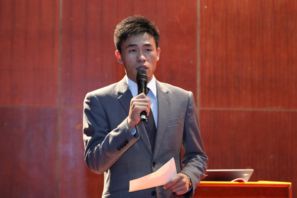 已在吉利集团人力资源部工作的我校2006级毕业生王民权主持宣讲活动