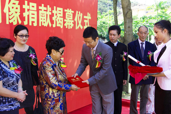 10月26日上午,孙中山和平教育基金会主席、美国夏威夷州政议院“最高人道和平”奖获得者、孙中山先生孙女孙穗芳,新加坡孙氏公会会长孙嘉和及夫人沈莲娥一行抵达我校,进行孙中山先生铜像在我校的捐赠揭幕仪式。中共三亚市委宣传部常务副部长简秋雄、中共三亚市委统战部副部长李海凤、三亚市外事办公室副主任裴克山应邀参加此次揭幕仪式。我校党委书记、校长陆丹,校领导王勋铭、秦杰锋与主礼嘉宾和三亚市领导共同为孙中山铜像揭幕,与我校师生共同见证这一神圣时刻,深切缅怀和纪念孙中山先生。揭幕仪式由校领导沈建勇主持。 据了解,多年以来,孙穗芳致力于研究、传播其祖父孙中山先生的思想,去年为纪念辛亥革命100周年,孙穗芳立志在全世界捐赠100座孙中山铜像。从2011年3月3日在泰国捐赠第一座孙中山先生铜像开始,她就一直为捐赠全球奔走。她的100座铜像捐赠目标不仅完成,而且捐赠的步伐还在继续。我校获赠的孙中山先生铜像已是她捐赠铜像中的第105座,我校也是海南高校中第一家受赠的本科高校。