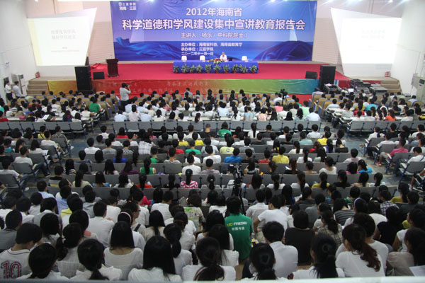 杨乐院士与我校校领导王勋铭合影留念 11月1日上午,“2012年海南省科学道德和学风建设集中宣讲教育报告会”三亚专场在我校书会堂成功举办,我国著名数学家、中国科学院院士杨乐作了题为《培养优良学风、做好学位论文》的主题报告。海南省教育厅副厅长谭基虎,海南省科协党组书记、副主席陈永明及我校校领导王勋铭参加本次报告会。海南省科学技术协会、海南省教育厅,三亚市科学技术协会、三亚市南繁科学技术研究院以及琼州学院派代表参会,与我校师生一起聆听了报告。报告会由谭基虎主持。 当天上午9点,我校书会堂座无虚席,1000多人相聚于此,集中进行一次精神洗礼。庄严的国歌拉开了本次报告会的序幕。海南省科协党组书记、副主席陈永明首先为报告会致辞。他表示,举办三亚专场报告会,邀请国内著名的数学家、中国科学院院士杨乐来三亚作报告,为三亚市广大青年学生、大学教师、科技工作者进行一场净化心灵、净化灵魂的讲演。他倡导青年学生不仅要热爱科学、崇尚科学,更要敬畏科学,珍惜本次听取报告会的机会,提高和升华自己的精神世界。 随后,本次报告会的主讲人杨乐院士开始演讲,他从讲述自己在学术道路上的亲身经历和个人感悟开篇,重点就学术研究做了深入细致的讲解。针对当前中国学术届出现的不良现象,引用其身边的名人华罗庚、钱伟长、陈景润的事例,为广大青年学生、教授、学者、科研工作者树立学术研究的典型榜样。三亚专场报告会中有80%的参会者为本科生,他们中间很多人都拥有继续学术研究的理想,杨乐院长针对这一实际情况,为心怀学术理想的莘莘学子们详细讲解了研究生学习阶段的学习方法和论文写作的完整过程。他认为,研究生阶段的主要任务有两项:一是继续打好较为广博扎实的基础,在理论和工作上做出成绩;二是在导师的指导下,接受一次完整的研究工作的训练,作出优秀的学位论文。 杨乐院士指出,改革开放以来,中国社会经济发展取得了令人瞩目的成就,但与世界发达水平国家相比还存在一定的差距,青年学生肩上的责任重大,因此,他对青年人提出了四点希望:第一,要树立远大的理想,抓住学习的黄金时期,立志在专业上有所建树;第二,培养浓厚的学术兴趣;第三,要有克服困难的精神和毅力;第四,坚持持续不懈地努力,在掌握丰富基本知识的基础上开拓创新。杨乐院士的讲座有的放矢、事例鲜活、语言凝练、娓娓道来,引起了现场参会人员的强烈共鸣和积极互动。我校2011级旅业管理学院邮轮班学生蔡飞说:“有幸聆听杨乐院士的报告会,感受大师风采,感到如沐春风,我要以杨乐院士为榜样,谨记他的四点希望。” 报告会最后,我校2010级财经学院会计专业学生杨贺欣代表全体师生庄严宣誓:发扬老一代科学家的进取精神,继承优良学术传统,坚持以科学精神、科学道德、科研伦理和学术规范为主要内容,保持学术自律,遵守学术规范,严格恪守学术道德,自觉维护学术尊严,尊重他人的学术成果,绝不抄袭,以勤奋、严谨、求实、创新、进取的精神开展开云手机入口,积极探索,实事求是,勇攀学术高峰。 据了解,“2012年海南省科学道德和学风建设集中宣讲教育报告会”在海南省共举办两场,分为在海南大学举办的海口专场和在开云手机入口举办的三亚专场,其中海南专场已于10月30日在海南大学举办。为积极配合我省加强科学道德和学风建设,开云手机入口作为三亚市举办最早、规模最大的本科大学承担了举办三亚专场的任务。报告会当天,我校阳光学子们现场表扬出的积极好学、严谨务实的精神风貌,充分赢得了省委领导的高度肯定。