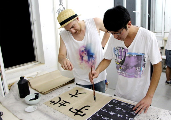 自2010年1月4日国务院发布《关于推进海南国际旅游岛建设发展的若干意见》起,海南国际旅游岛建设正式起步,并明确了在2020年将海南初步建成世界一流海岛休闲度假旅游胜地,把海南岛打造成为开放之岛、绿色之岛、文明之岛、和谐之岛。海南国际旅游岛发展战略的提出进一步加快了全岛的发展速度,区域特色人才需求进一步增加。作为海南地区的本科高校,我校紧抓机遇,明确人才培养的目标和方向,创新教学方式,让学生在特色课堂教学中,成长为社会需求的实用性高级专门人才。 艺术学院“书法与白描”课堂:国际元素与中国文化的桥梁 近日,艺术学院的“书法与白描”课堂上多了许多异国面孔,来自俄罗斯、法国、新西兰等地的外国留学生们怀着对中国传统文化浓厚的兴趣慕名前来艺术学院教师周伟明的工作室,在个性化的课堂中体验中国书法文化的韵味,感受中国传统艺术的风情。课堂上,周伟明老师指导留学生观赏中国传统山水国画,耐心讲解画面的背景和精髓,他说:“如何准确在山水画中融入情感是中国画家的精神层次,含蓄和夸张的表现在于自我情感的把握。”随后,周老师挥舞笔墨,给留学生示范秀丽端庄的小楷和端正雄厚的篆书。示范教学后,留学生与中国学生一起进行书法练习,周老师逐个进行指导,为留学生讲解书写的技巧,运笔时如何注意轻重缓急,圆滑且刚劲有力。留学生认真学习,耐心练习,一撇一捺中释放着对中国书法的喜爱之情。