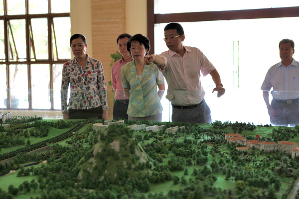 教育部国际合作与交流司司长张秀琴一行莅临我校参观指导,在陆丹校长陪同下参观我校沙盘模型