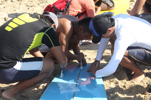阳光学子们动手组装冲浪板